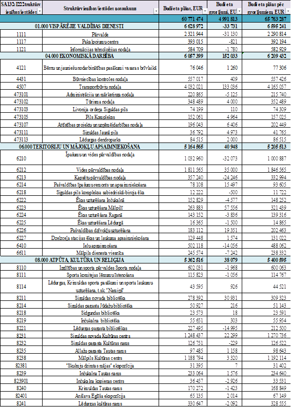- 1 282 euro pārcelti no Siguldas novada kultūras