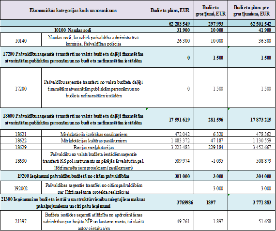 Kopumā ir palielināti plānotie budžeta ieņēmumi par 297 993