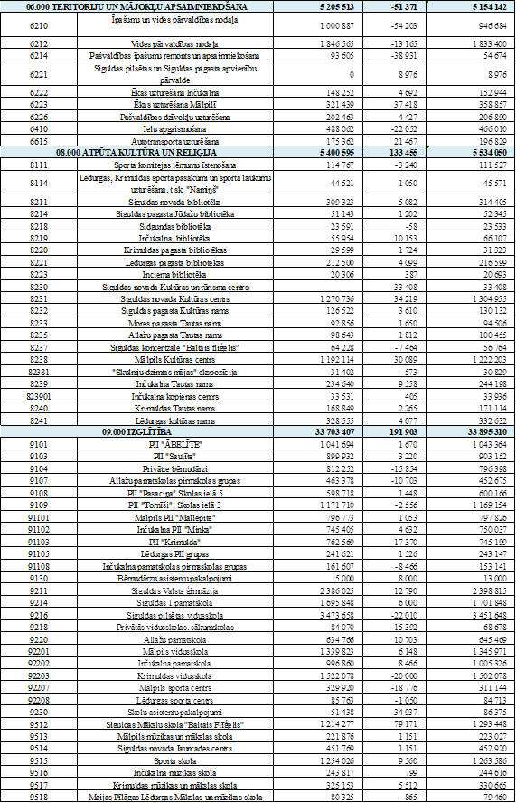klasifikācijas kodiem (2. pielikums) un precizēts Siguldas novada