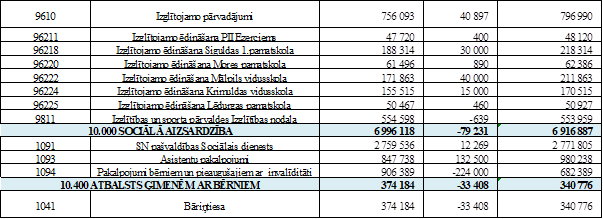 Veikta visu budžeta tāmju korekcija pa ekonomiskās
