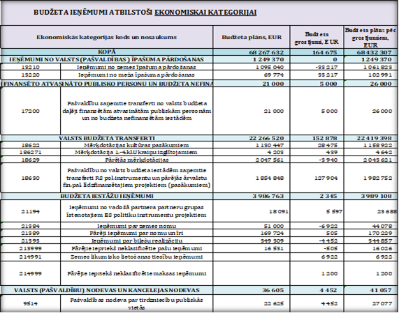 Budžeta ieņēmumu plānā izmaiņas veiktas pamatojoties uz