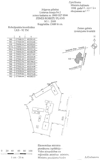 zemesgrāmatā uz valsts vārda. Zemesgabalu robežas norādītas šī