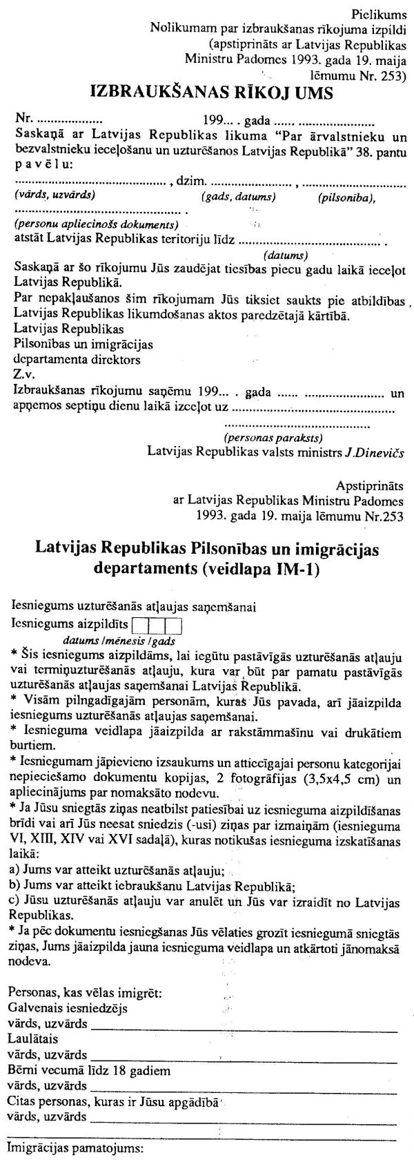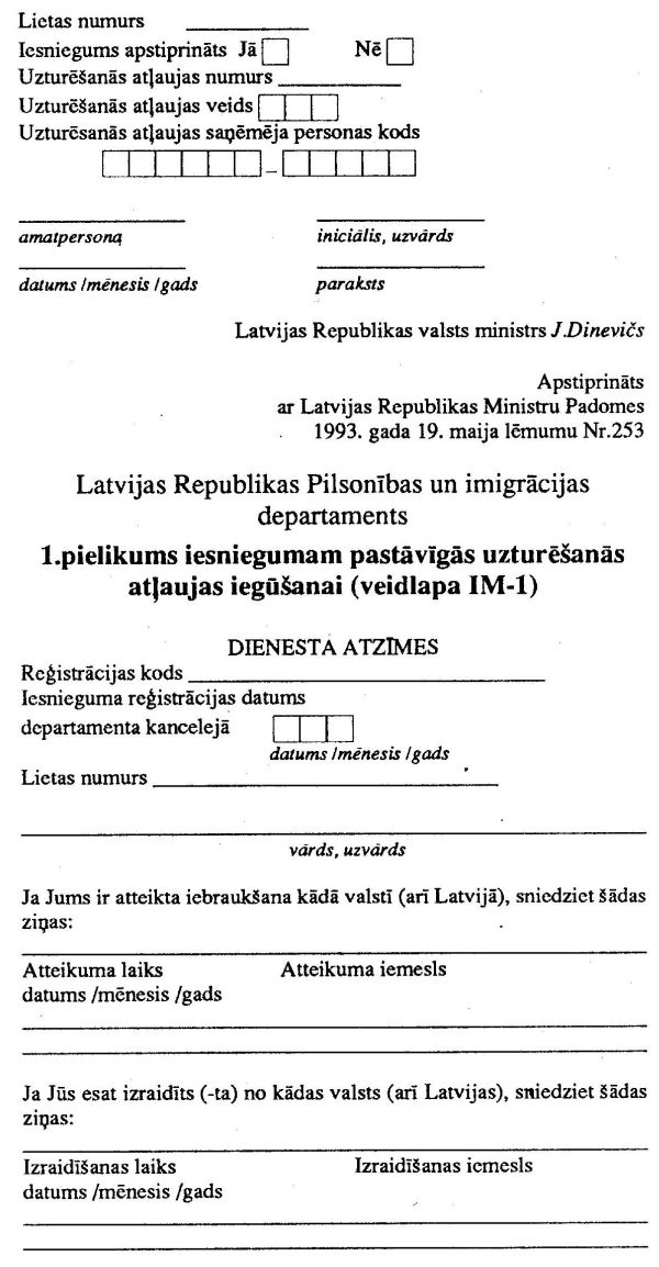 uzturēšanos Latvijas Republikā: |