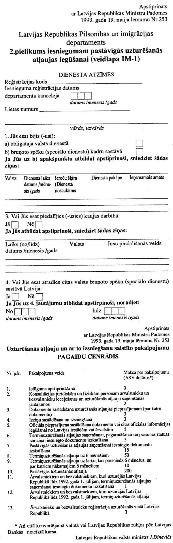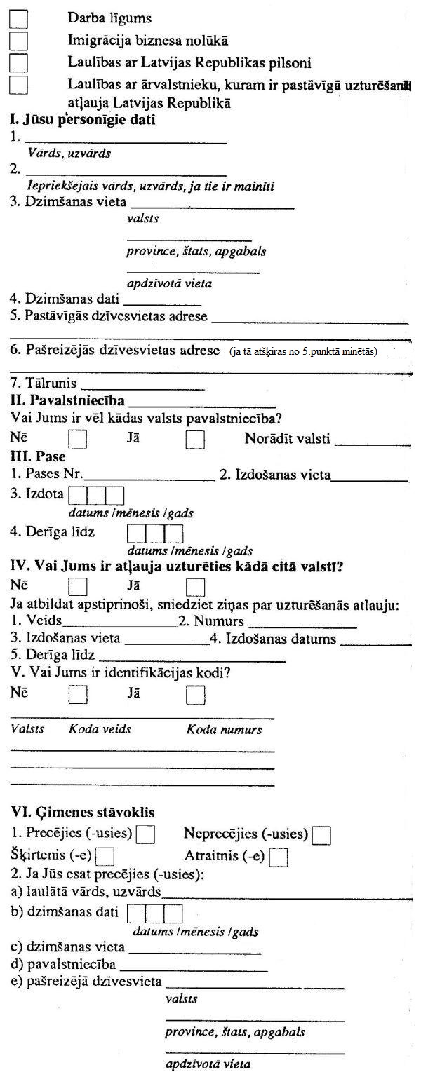 iesnieguma veidlapu izgatavošanai, uzturēšanās atļauju