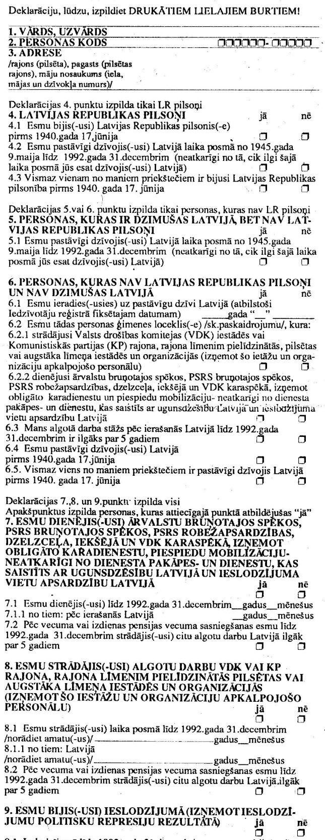 pretendenta) piederību pie deklarācijas 7., 8. un 9. punktā