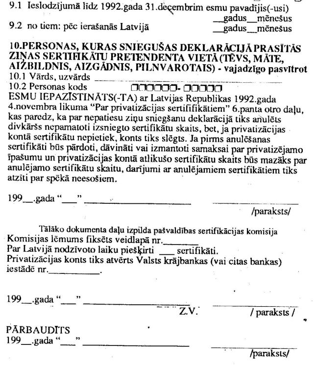 privatizācijas sertifikātu kontu atvēršanas deklarāciju un